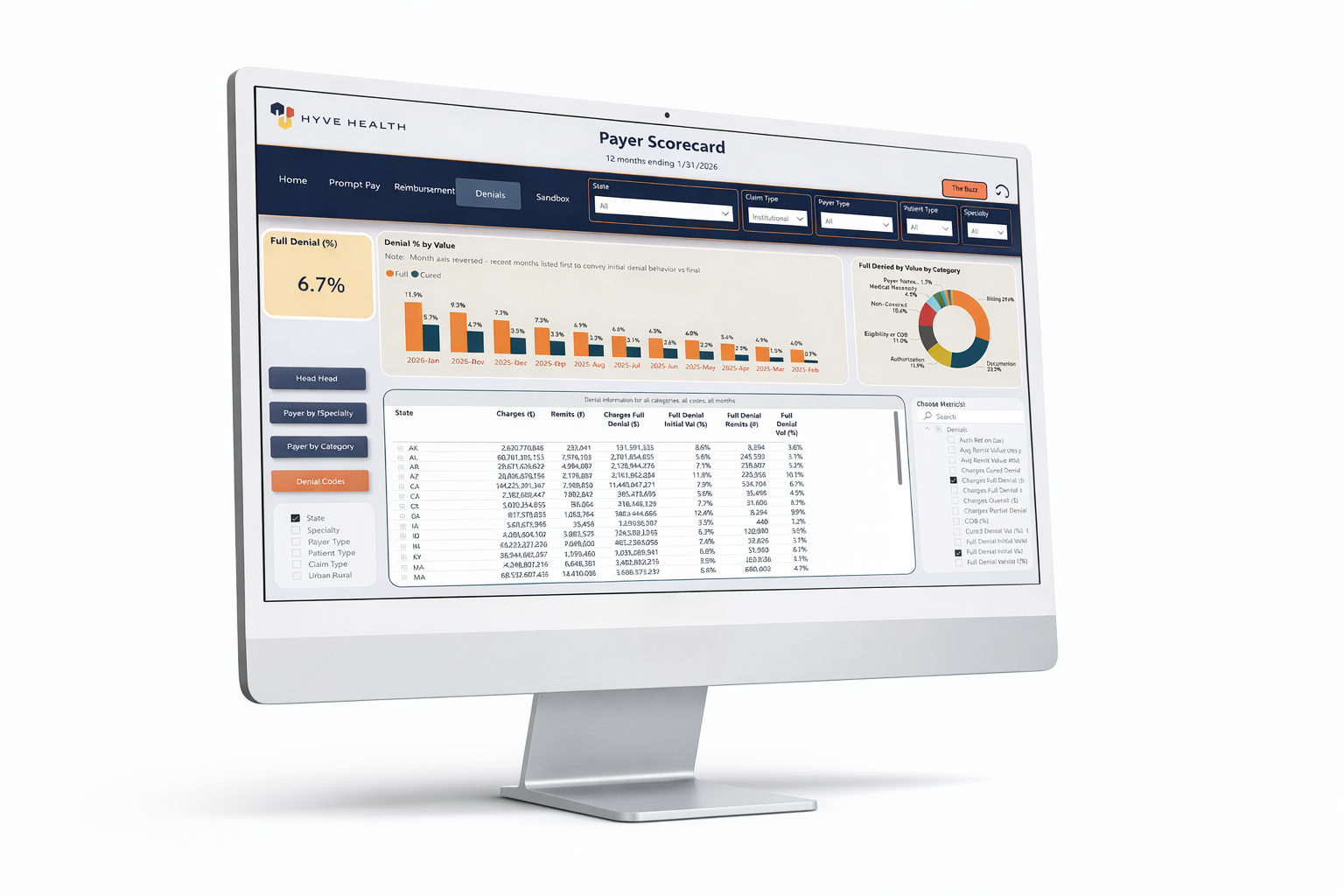 Gain visibility to detailed denial metrics.